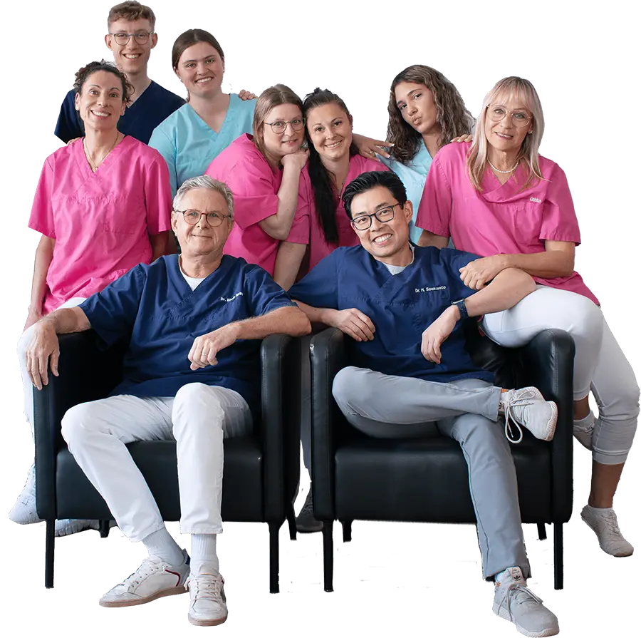 Unser Team besteht aus 3 Zahnärzten und 5 Helferinnen. Gemeinsam ermöglichen wir, dass Ihr Aufenthalt bei uns so angenehm und entspannt wie möglich ist.